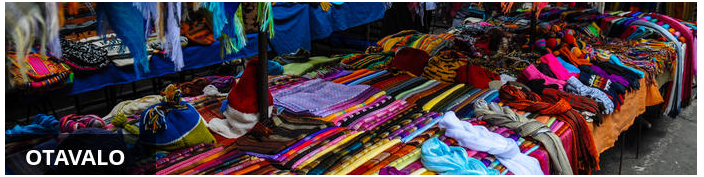 Visite de son célèbre marché, magnifique par ses couleurs et la grande varité de son artisanat: Ponchos, tissus, écharpes, chapeaxu de paille, bijoux en argent, céramique, etc. Les commercants y sont célèbres pour leur tenues traditionnells: poncho bleu, pantalon blanc, sandales, chapeau et tresse pour les hommes, blouse brodée, “anaco” (jupé typique), tissu bleu marine sur la tête, collier de verroterie dorée pour les femmes
