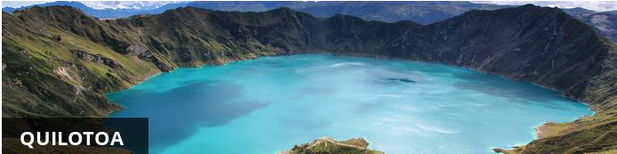 Situé dans le canton de Pujili, en Équateur, dans la province de Cotopaxi, le petit village de Quilotoa est connu pour son célèbre lac du cratère de Quilotoa, un plan d’eau turquoise étonnamment lumineux qui, selon la légende, « n’a pas de plancher » (les géologues estiment une profondeur de 250 mètres). Un belvédère sur le précipice permet une vue sur le lac à 400 mètres au-dessous et les sommets blancs du Cotopaxi et de l’Iliniza Sur au-delà. Les randonneurs aventureux peuvent faire de la randonnée dans ou autour du cratère ou camper sur le fond à couper le souffle mais froid. La ville fait partie de la populaire boucle Quilotoa et un point de départ commun pour le village de Quilotoa Traverse de plusieurs jours. Les autres points forts incluent : les zones de forêt nuageuse dans la réserve d’Ilinizas, les sommets volcaniques d’Iliniza Norte et d’Iliniza Sur, plusieurs villages andins indigènes environnants, un excellent hébergement à Tchougchilan, ainsi que la nourriture et les produits traditionnels des marchés animés de Saquisili.