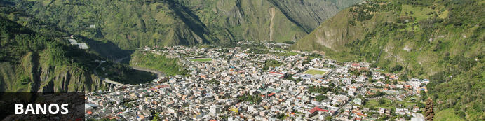 Arrivée à Baños, situé au pied du volcan actif Tungurahua (5.100m). Le nom de cette petite ville est à attribuer à ses bains thermaux résultant de l´activité du Tungurahua. Visite de Baños, agréable petite ville thermale. Dignes d´intérêt : l´église dominicaine Notre Dame de l´Eau Sainte, important lieu de pèlerinage ; les artisans qui élaborent la « melcocha », le marché aux fruits et légumes ; les ateliers de tagua, fibre végétale autrement appelée « ivoire végétal ».